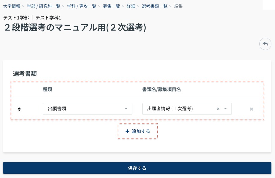 | 選考書類の設定 | 選考ごとに、選考書類を設定・追加することができます。![]() |